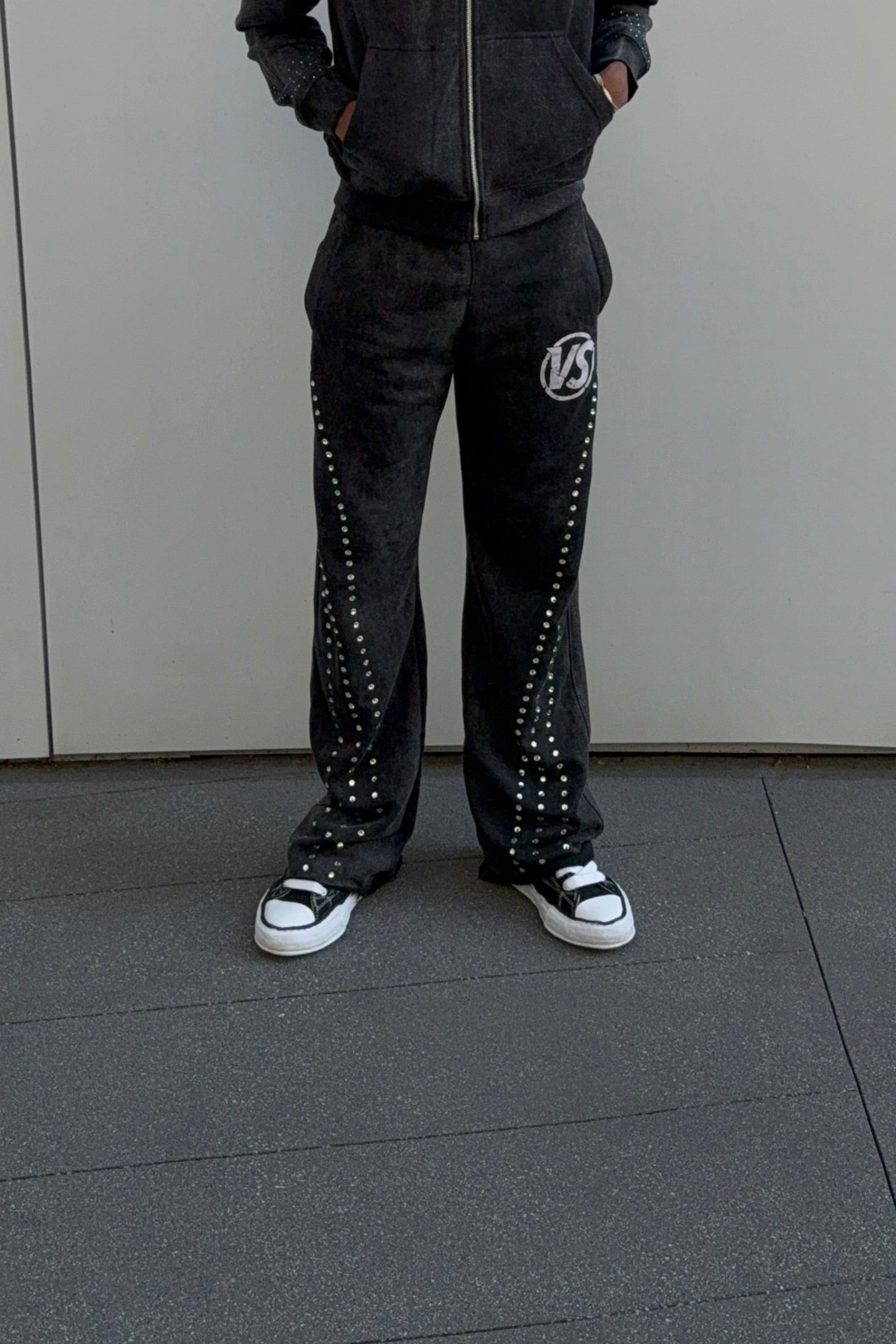 BLACK Rhinestone 'VS' Sweatpants